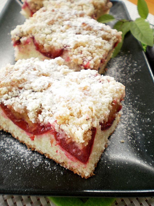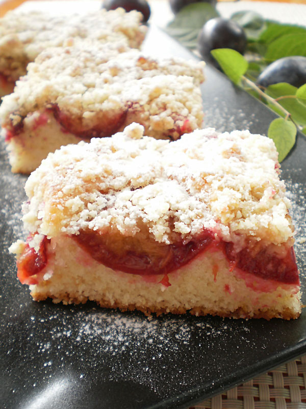 punem jumatatile de prune dupa care presaram crusta pe care o pregatim